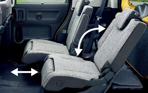 リアシートには左右独立したセンターアームレストも採用。マルチユースフラップと合わせて使うことで後席の快適性をさらに高めるととともに、座面に置いた荷物の横ずれ防止にも役立つという工夫が織り込まれています。もちろんスライドとリクライニング機能も引き続き採用されており、さまざまな用途に対応できます。