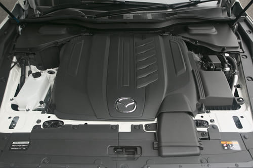 つまり、プレミアムブランドと同じ戦略をマツダはとってきたことになる。FRベースにした理由はいくつかあって、FFベースよりも前後重量配分を50:50に近づけられること。しかしそれ以上に決定的だったのが直列6気筒エンジンの採用を決めたことだ。主戦場となる米国では6気筒エンジンが不可欠だが、マツダが培ってきた4気筒エンジンのノウハウを活かすにはV6より直6がベター。しかしエンジン横置きでは直6が収まらない。無理に収めようとすれば全長が2mクラスになってしまう。そこでエンジン縦置きFRを採用、という流れだ。